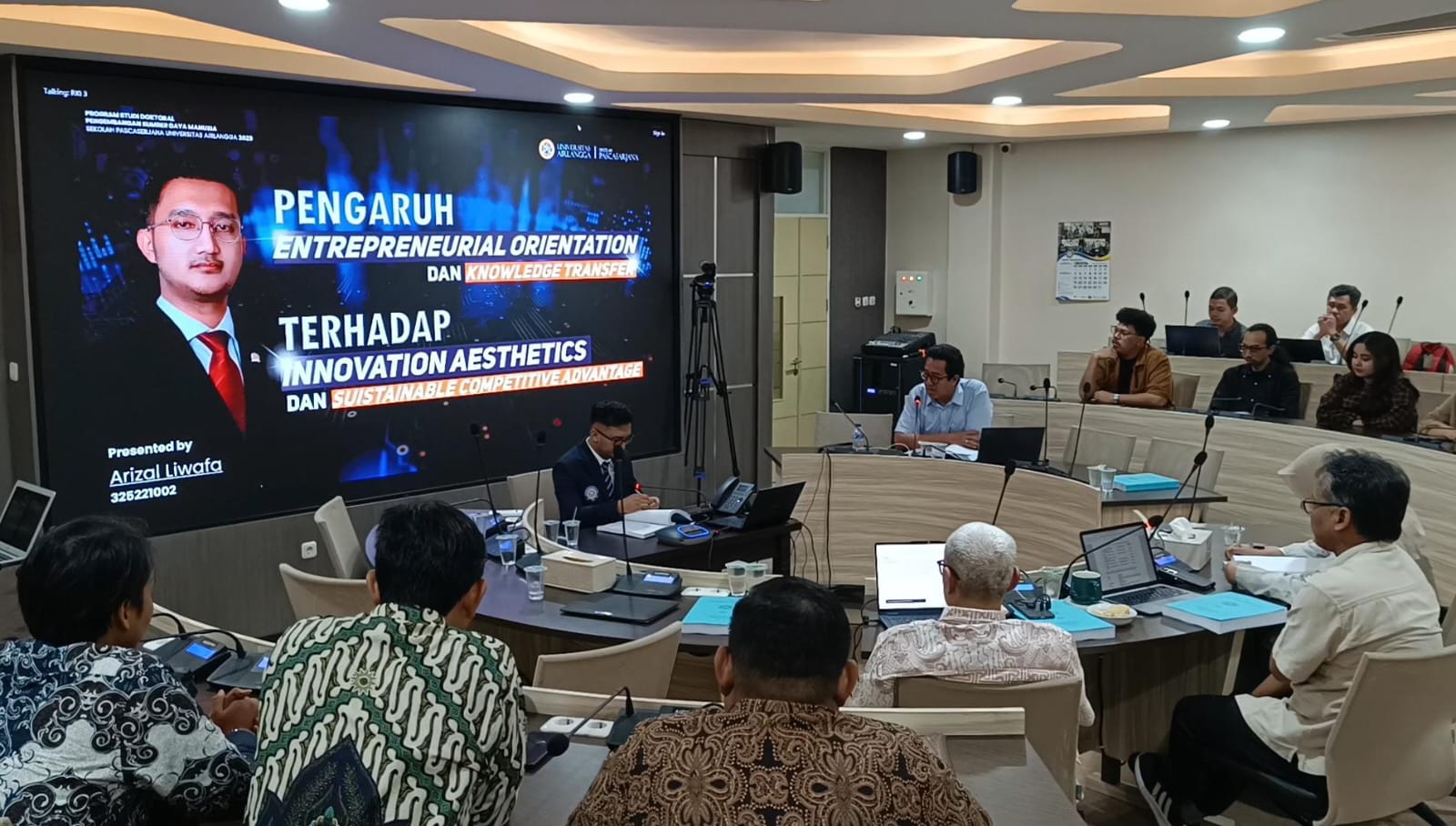 Arizal Liwafa tercatat sebagai mahasiswa Program Doktor Pengembangan Sumber Daya Manusia (PSDM). Disertasi yang dipertahankan berjudul, “Pengaruh Entrepreneurial Orientation dan Knowledge Transfer Terhadap Innovation Aesthetics dan Sustainable Competitive Advantage.”