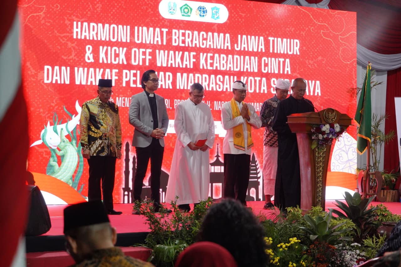 Kepala Kanwil Kemenag Provinsi Jawa Timur, Akhmad Sruji Bahtiar, menegaskan bahwa keberagaman agama dan budaya adalah kekayaan bangsa yang harus dirawat. Ia juga menyampaikan target program wakaf bagi calon pengantin dan pelajar di 37 kabupaten/kota di Jawa Timur.